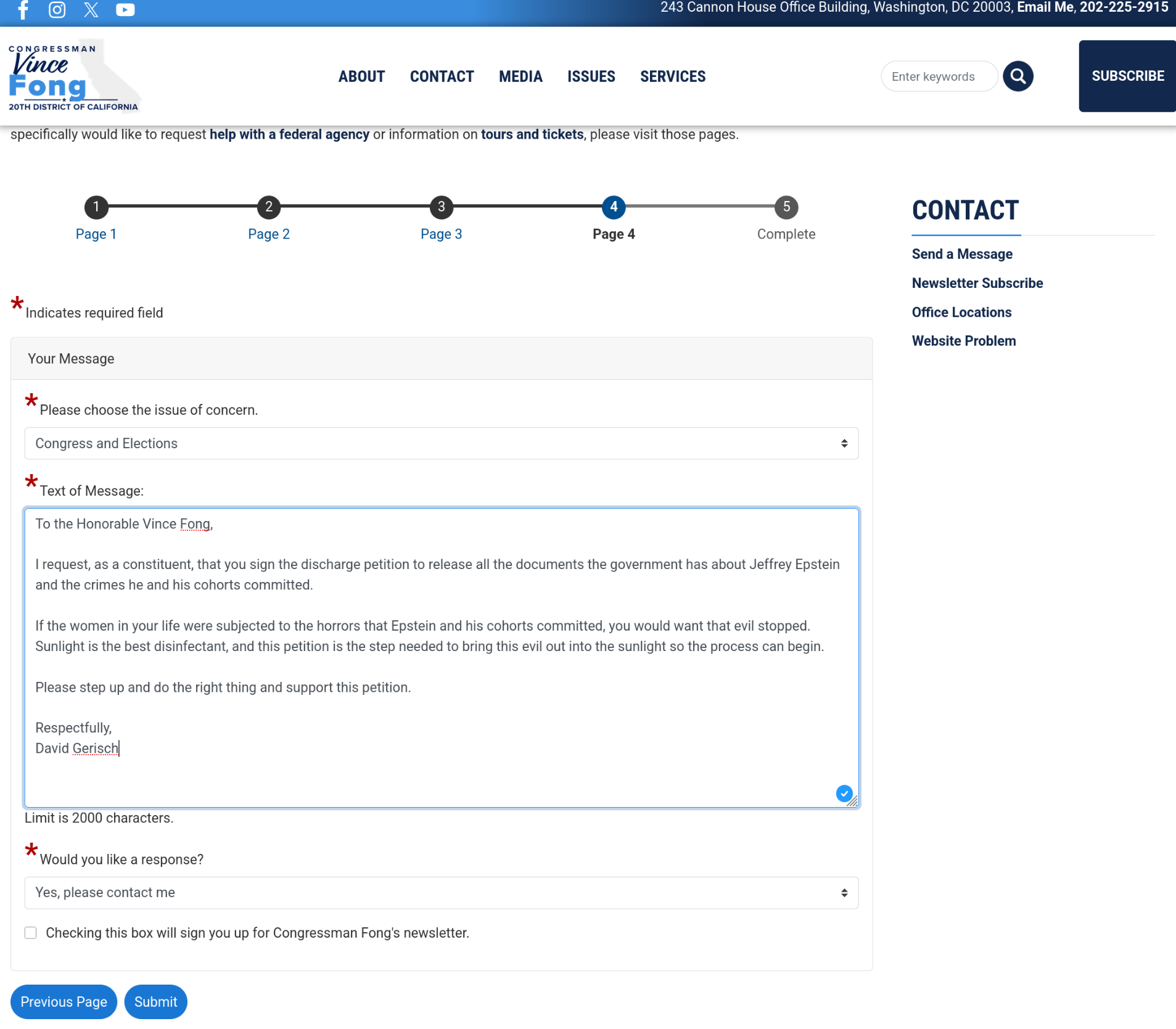 Another letter to Congressman Vince Fong